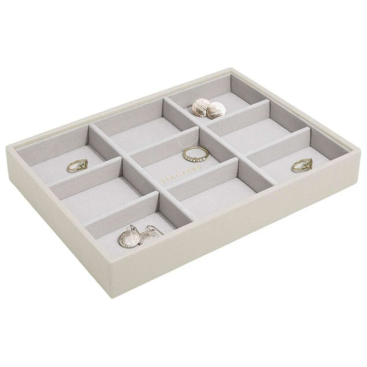 Deze klassieke statement-laag voor dames in havermoutcrème, aangeboden door het merk Stackers, is gemaakt van kunstleer en fluweel. De afmetingen zijn 3,7 cm (hoogte) x 25 cm (breedte) x 18 cm (diepte). Het wordt aanbevolen om deze sieradendoos schoon te vegen om deze in goede staat te houden. Alle sieradendoosjes worden compleet geleverd met stapelverpakking. De Stackers Classic Statement Layer - Oatmeal Cream is slim gemaakt en ontworpen om al je oorbellen, ringen of haarclips perfect vast te houden. Het kan aan elk ander klassiek sieradenbakje worden toegevoegd om een ​​sieradendoosje te creëren, maar kan ook op zichzelf worden gebruikt. U hoeft geen concessies te doen aan de organisatie.