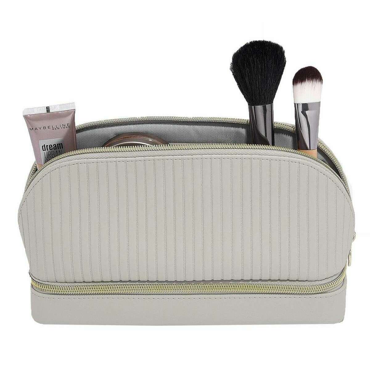 Perfect voor dames is deze Stackers kalksteengrijze make-up- en sieradentas, hij is ook gemaakt van kunstleer en fluweel. De afmetingen zijn 15 cm (hoogte) x 24 cm (breedte) x 8,5 cm (diepte). Alle tassen worden compleet geleverd met een stapelverpakking. De Stackers Cosmetica- en Sieradentas - Limestone Grey is een musthave voor onderweg! Deze stijlvolle grijze make-up- en sieradentas heeft twee hoofdcompartimenten: één voor je make-up en huidverzorging en een ander compartiment compleet met ringrollen en een afneembaar halskettinggedeelte voor je sieraden.