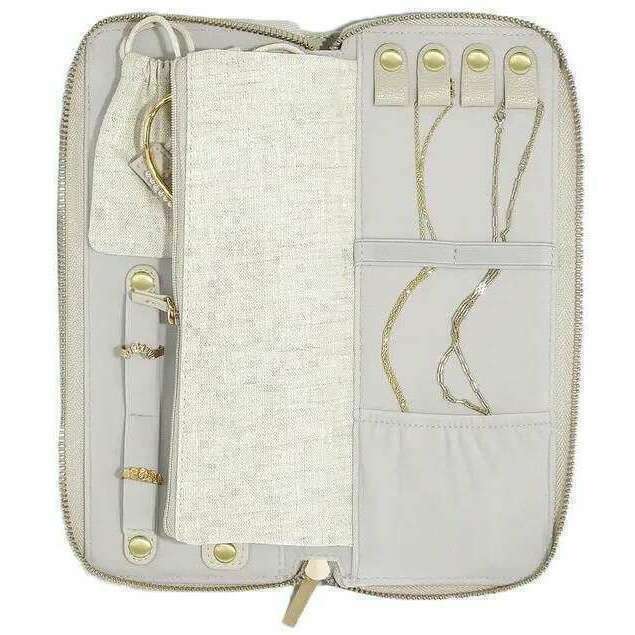 Designer Stackers heeft u deze faux leer- en linnenjuwelenbox voor dames gebracht met behulp van havermout/linnen beige tonen. Het meet 24,5 cm (hoogte) x 9 cm (breedte) x 3,5 cm (diepte). Alle sieradendozen zijn compleet in Stackers -verpakkingen. De stackers sieradenrol - Havermout/linnen beige heeft een verscheidenheid aan onderdelen waarmee u uw sieraden altijd en overal kunt organiseren. Allemaal veilig met zijn ritssluiting, u kunt er zeker van zijn dat uw favoriete sieraden altijd van binnen veilig worden gehouden. Deze rol heeft ruimte voor maximaal vier kettingen of armbanden, heeft een oorbelhouder en een klein fluwelen zakje om kleine en losse items veilig te houden. Een speciaal onderdeel van deze accessoire is dat je favoriete kettingen en armbanden kunt opslaan zonder het gedoe van Tangling. Dit is de perfecte sieradenorganisator om te hebben tijdens het reizen of gewoon uw huis netjes en netjes te houden.