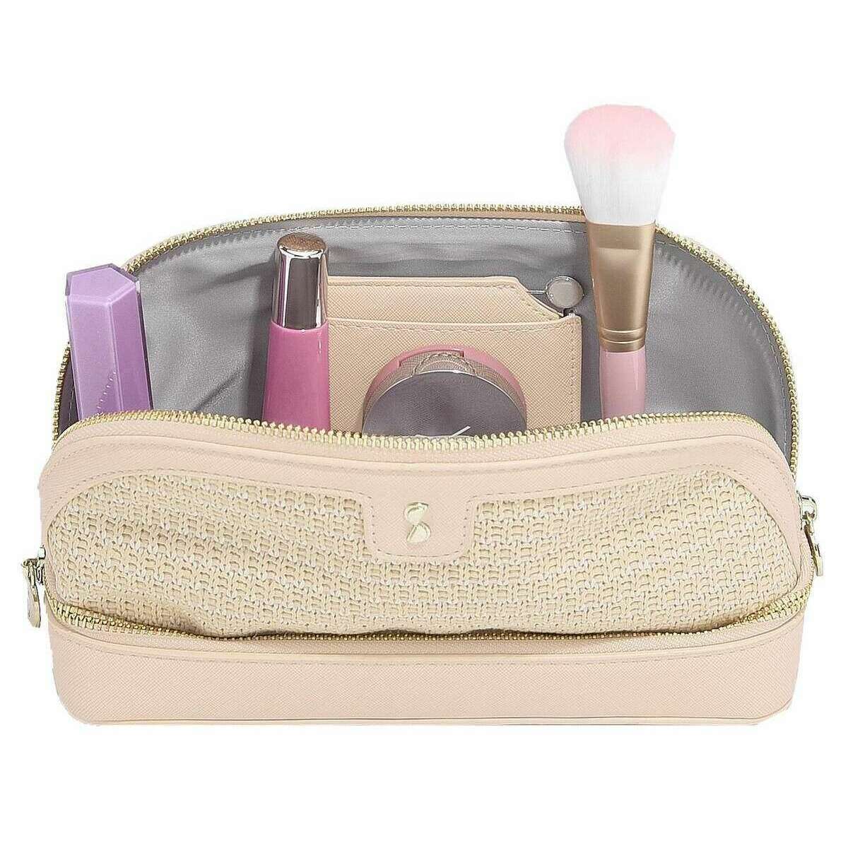 Deze roze raffia make-uptas voor dames van raffia, gemaakt van raffia-effect en kunstleer, is ontworpen door de ontwerper Stackers. De afmetingen zijn 15 cm (hoogte) x 8,5 cm (breedte) x 24 cm (diepte). Alle tassen worden compleet geleverd met een stapelverpakking. De Stackers Raffia Cosmetic Bag - Blush Pink Raffia is een musthave voor onderweg! Dit unieke en trendy make-uptasje van roze raffia heeft een grote opbergruimte voor al je make-up en huidverzorging en een kleine, handige spiegel. Er is ook een bodemvak dat je kunt dichtritsen voor extra opbergruimte en veiligheid.