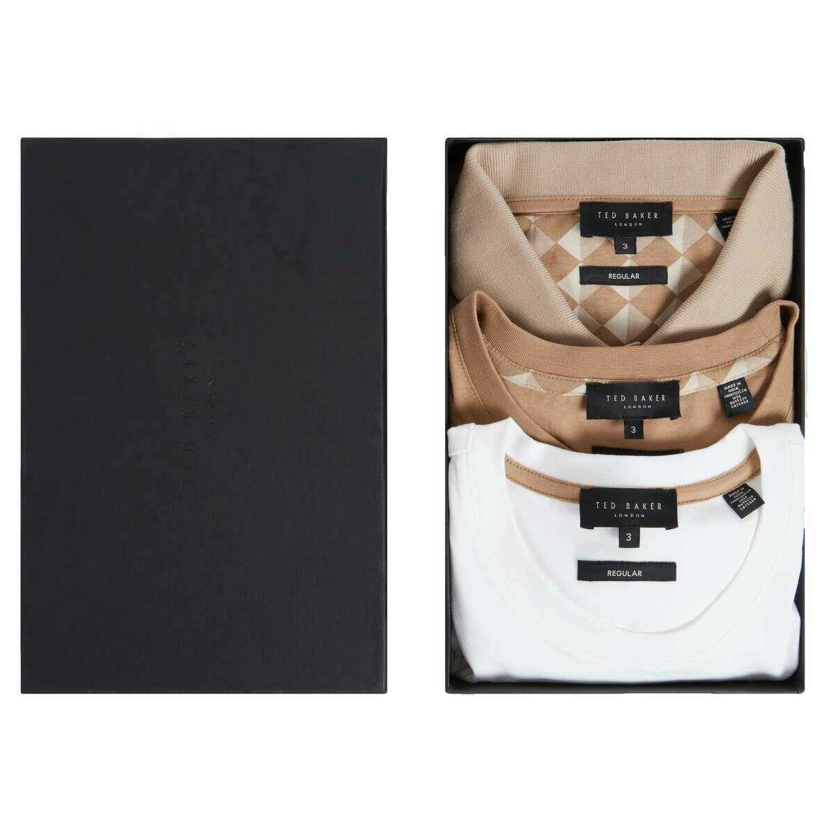 Ted Baker Mayison 3 Pack Box Print Jersey T -shirt - Tan