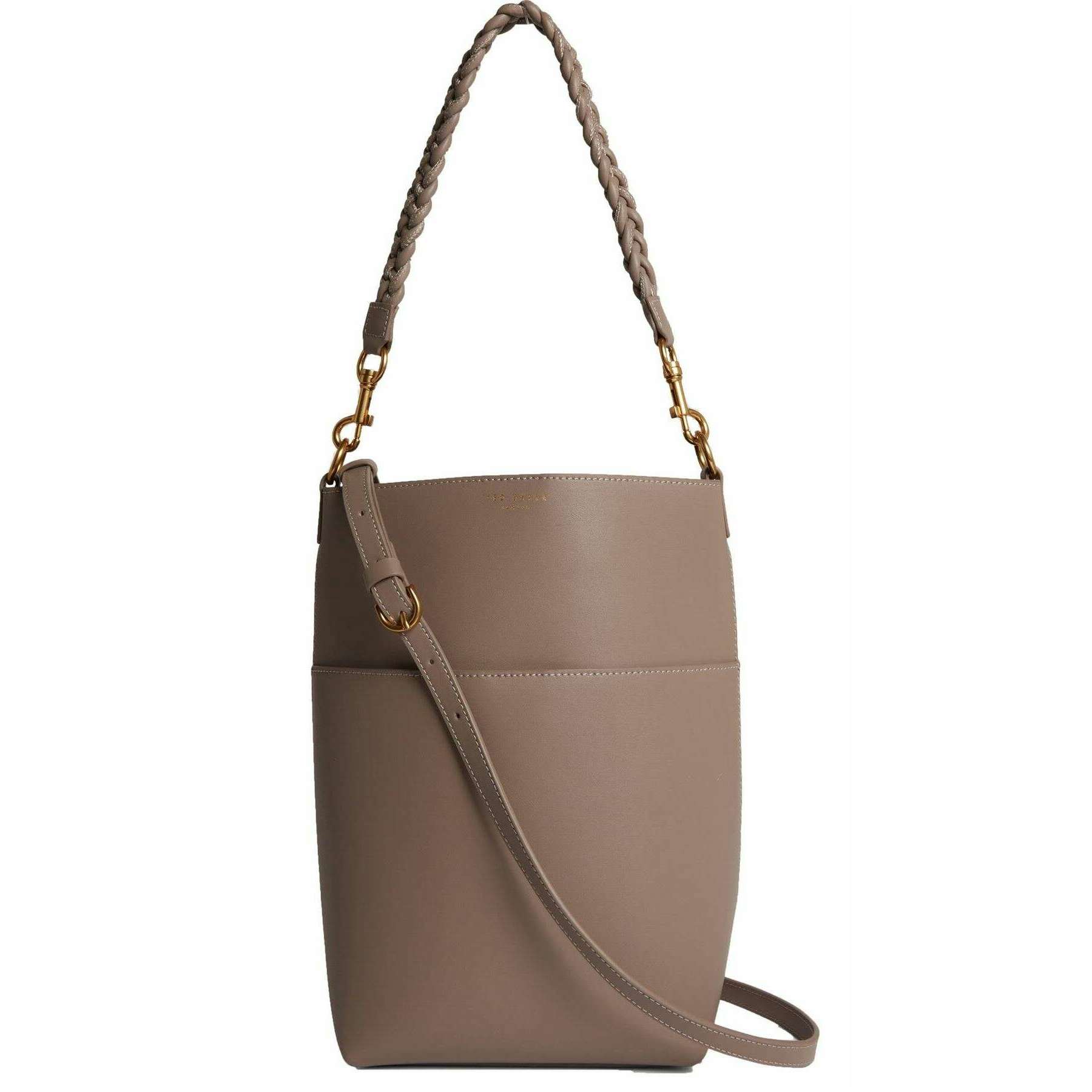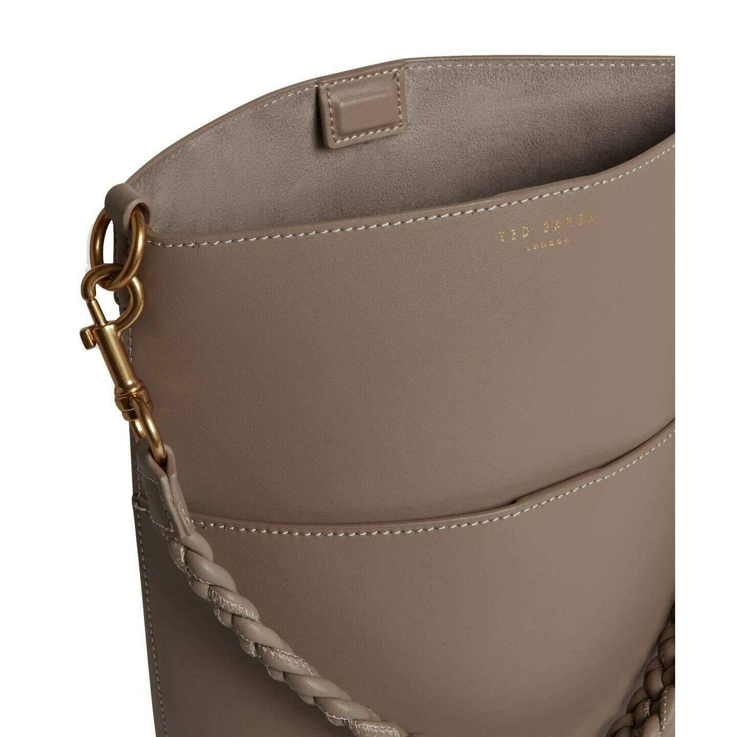 Deze wannda gevlochten handgreep langwerpige lederen bucket Bag voor vrouwen is gevormd door het merk Ted Baker in een bruine kleur en is gemaakt van 100% runderleren schelp. Het meet 30 cm (hoogte) x 22,5 cm (breedte) x 13 cm (diepte). Alle tassen worden compleet geleverd met Ted Baker -verpakkingen. De Ted Baker Wannda Veilig Handle langwerpige lederen bucket Bag - Taupe is een garderobe die essentieel is voor dagelijks gebruik als u voor een casual maar verfijnde look gaat. Deze echte lederen, taupe gekleurde tas biedt veel ruimte met een extra zak aan de buitenkant van de tas en is gemakkelijk toegankelijk met een magnetische sluiting, plus twee verschillende handgrepen voor meerdere looks. Het voltooien van deze tas is de subtiele Gold Ted Baker -branding op de top van de tas.