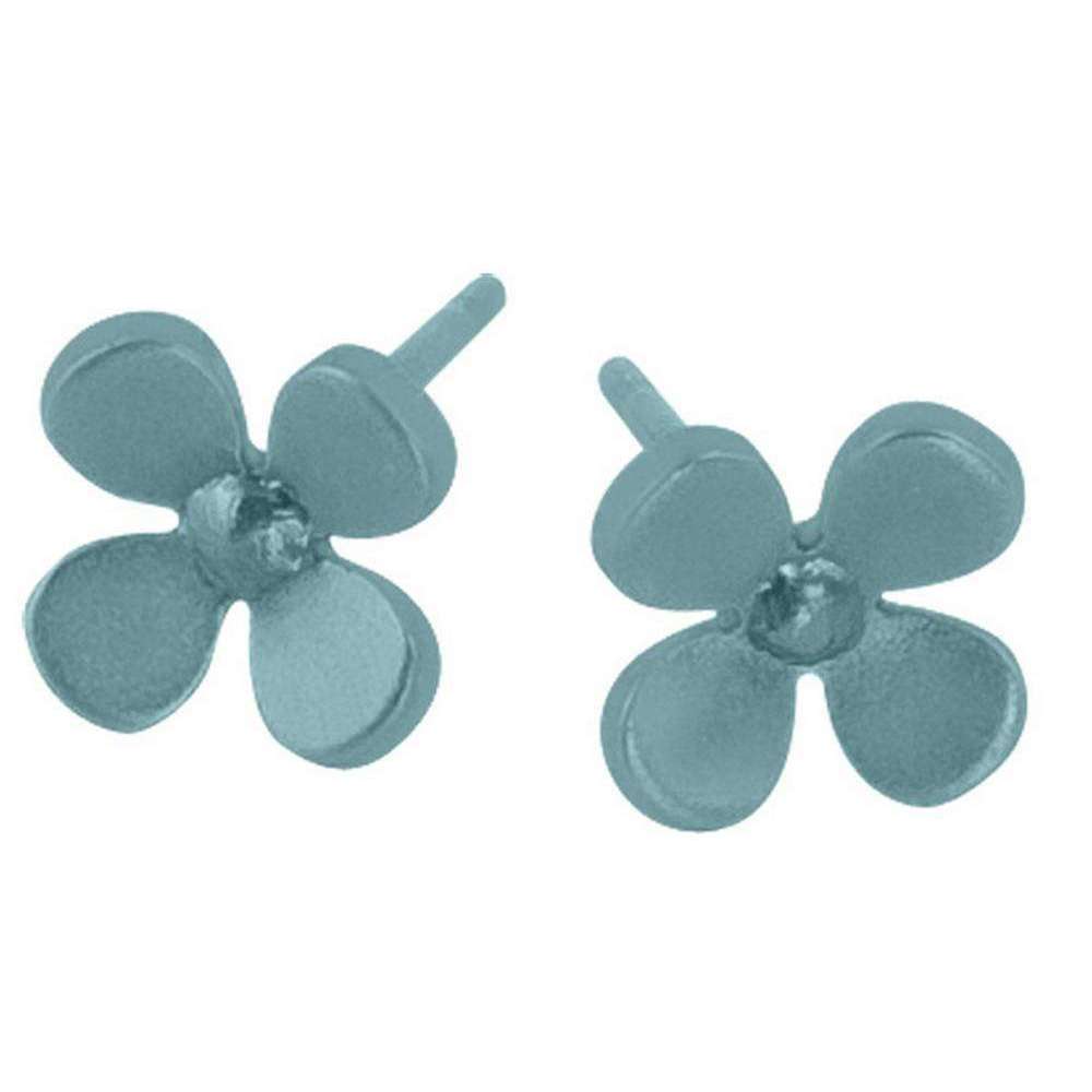Ti2 titanium 8 mm vier bloembladen bloembuien oorbellen - hemelblauw