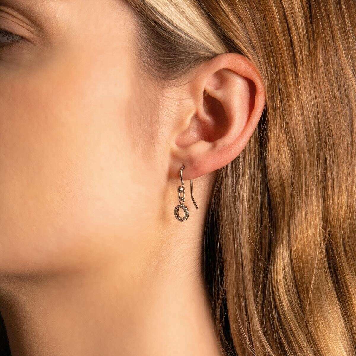 Ti2 titanium cirkel diamant druppel oorbellen - zilver