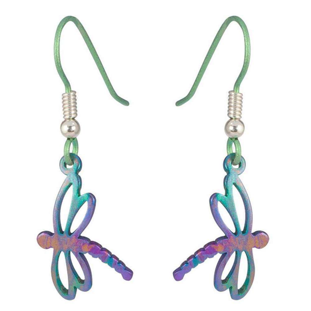 Ti2 titanium kleine libel druppel oorbellen - groen/paars/roze