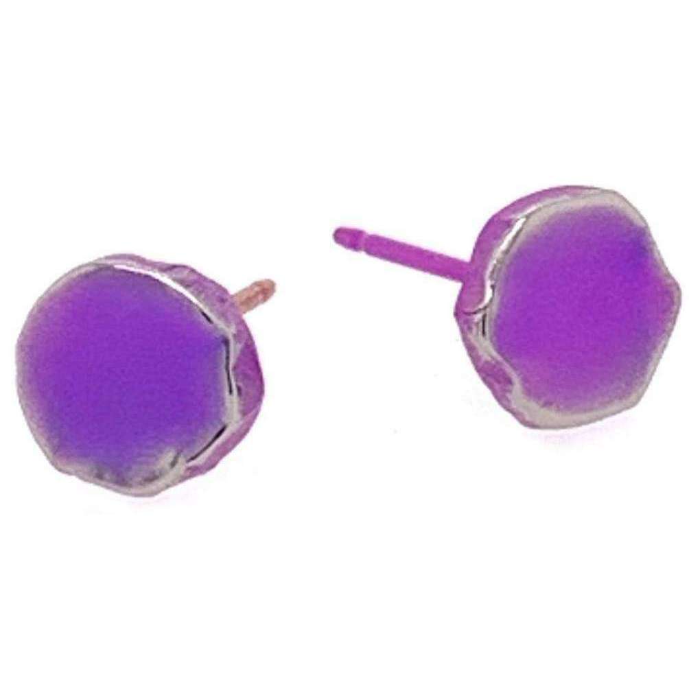 Ti2 titanium squashed 7 mm ronde stud oorbellen - keizerlijk paars