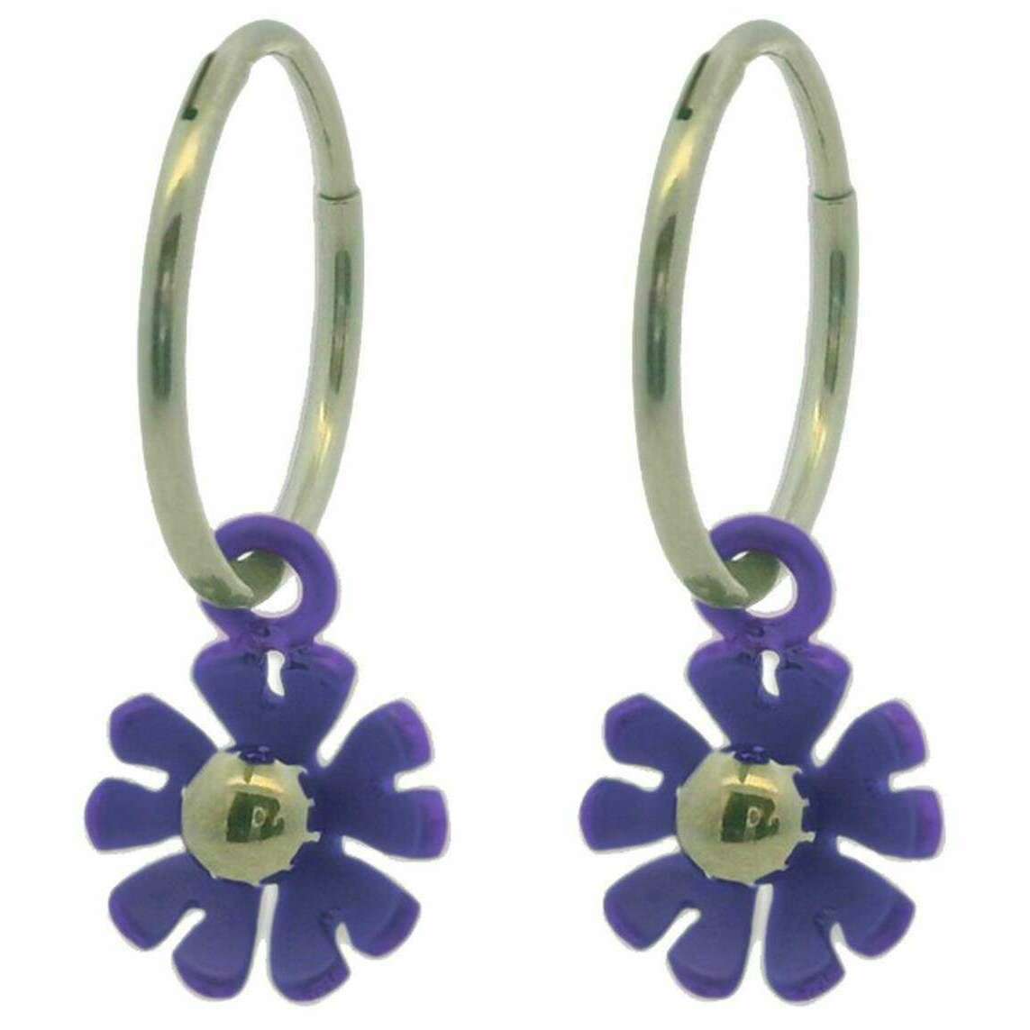Ti2 titanium tien bloemblaadbloem charme hoepel oorbellen - paars