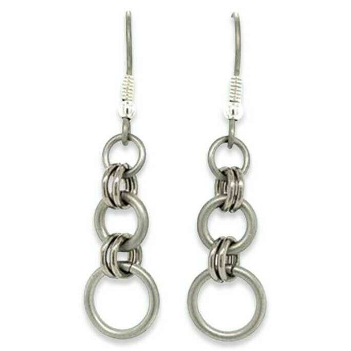 Ti2 titanium drievoudige bundel druppel oorbellen - natuurlijk zilver