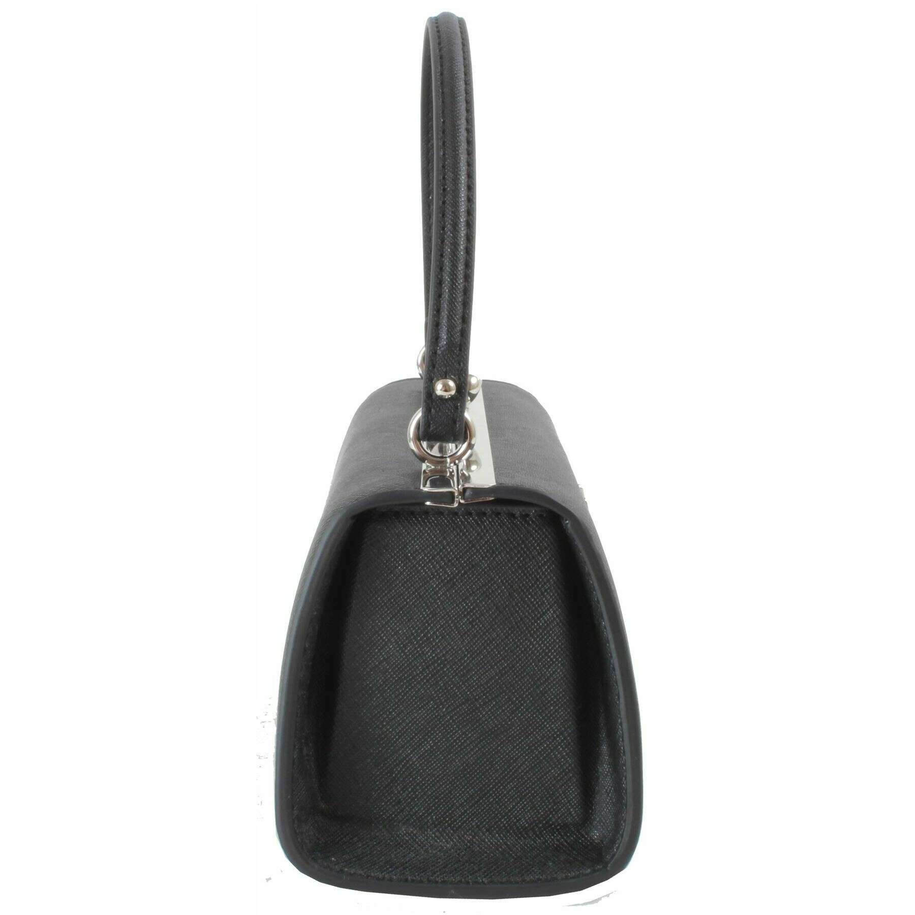 • Orb-motief voorkant, basisvoeten, kus-lock clasp-sluiting, bovenste draaggreep, gevoerd interieur, in reliëf interieurpanel, afneembare verstelbare crossbody-band