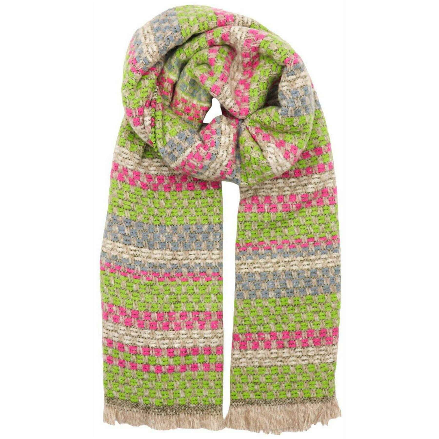 Zelly sjaal met abstracte lijn wintergewicht print - groen/roze