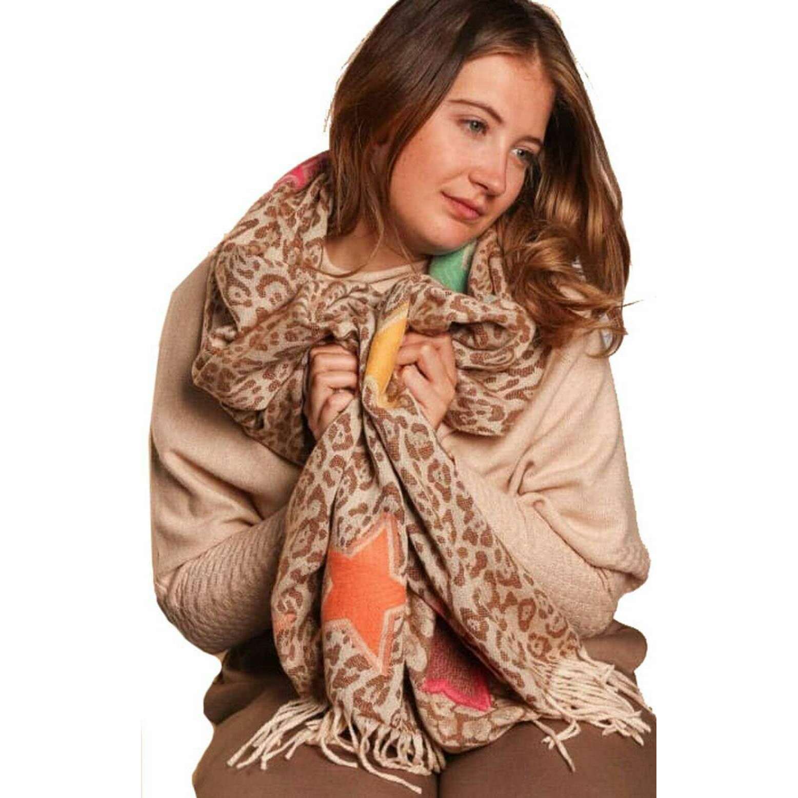 Zelly wintergewicht sjaal met dierenprint - bruin
