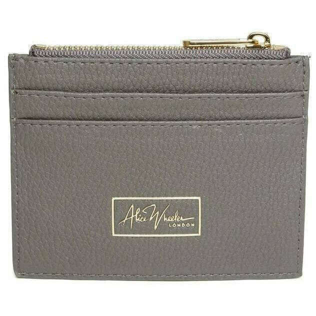 This women's barbican coin purse by the brand Alice Wheeler London is made from 100% vegan faux leather and is showcased in grey. It measures 9cm(height) x 11.5cm(width). All the purses come complete with alice wheeler packaging. The Alice Wheeler London Barbican Coin Purse - Slate Grey is handy and a great way to organise your cards and cash. This purse features a main zippered compartment to store coins and notes and 2 card slots on the front and 2 on the back. Finishing off this purse is the Alice Wheeler bee logo adorned to the front. Made from high-quality vegan faux leather means that this purse is completely eco-friendly.