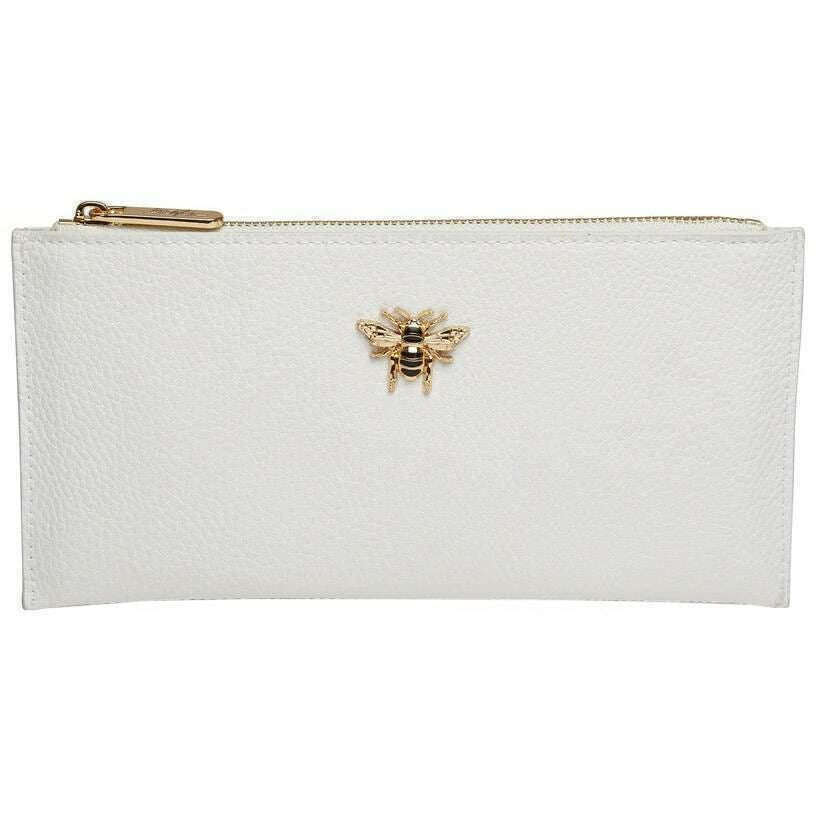 This women's brunel purse has been made from 100% vegan faux leather, featured in a white colour and is from the brand Alice Wheeler London. It measures 10.5cm(height) x 21cm(width) x 1cm(depth). It is recommended to wipe clean with damp cloth to keep this purse in good condition. All the purses come complete with alice wheeler london packaging. The Alice Wheeler London Brunel Purse - White is handy and a great way to organise all of your money. This purse features a compartment to store notes or receipts, room for your cards and an exterior zipper pouch for coins, as well as a practical zipped pocket at the back. Finishing off this purse is the iconic bumble bee embellishment logo and branding on the back. Made from high-quality vegan faux leather means that this purse is completely eco-friendly.