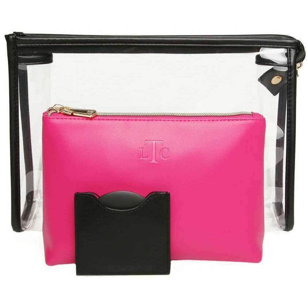 ({IF["Manufactured from premium pvc and textured vegan faux leather is this black/pink women's ltc 3 piece makeup beauty gift set by the designer Alice Wheeler London. It measures clear case - 21cm(height) x 30cm(width) x 8cm(depth) beauty case - 13.5cm(height) x 20cm(width) x 6cm(depth) mirror case - 7.4cm(height) x 8.2cm(width). All the bags come complete with alice wheeler london packaging. The Alice Wheeler London LTC 3 Piece Makeup Beauty Gift Set - Black/Pink will make a superb addition to your collection, giving you 2 storage cases and a handy compact mirror. The clear case is perfect for travelling while the stylish make-up bag will look elegant on your dresser and will keep all of your beauty products in one place. Both the make-up bag and compact are debossed with the London Train Company branding. This set is perfect as a gift idea."!=""]})