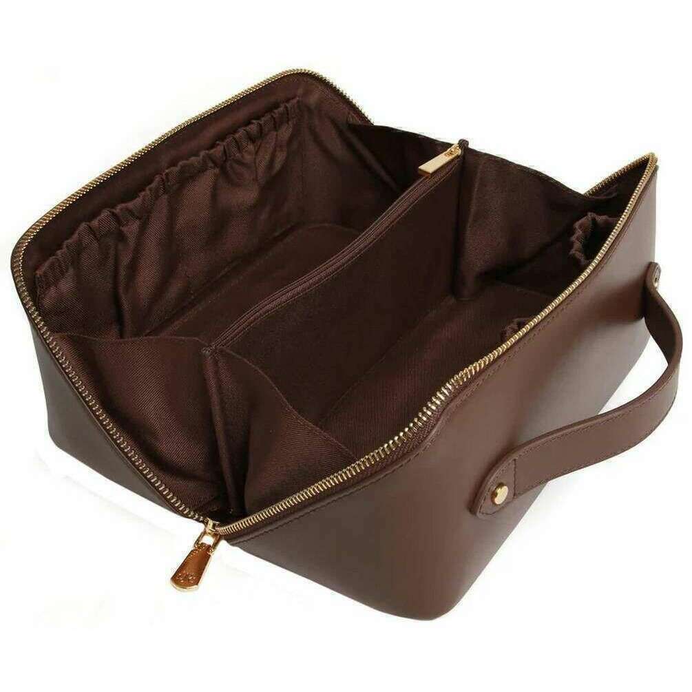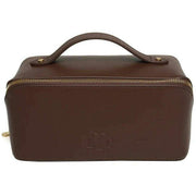 This women's ltc leather train case by the brand Alice Wheeler London is made from 100% premium leather and is showcased in brown. It measures 12cm(height) x 24cm(width) x 12cm(depth). All the bags come complete with alice wheeler london packaging. The Alice Wheeler London LTC Leather Train Case - Brown will make a practically stylish travel companion, giving you an accessory that will organise your essentials and look good doing it. Unzip it to find a dual compartment with internal pockets and a zipped pocket in the middle for smaller items which you don t want to roam loose. It has a top carry handle and is finished with debossed branding.