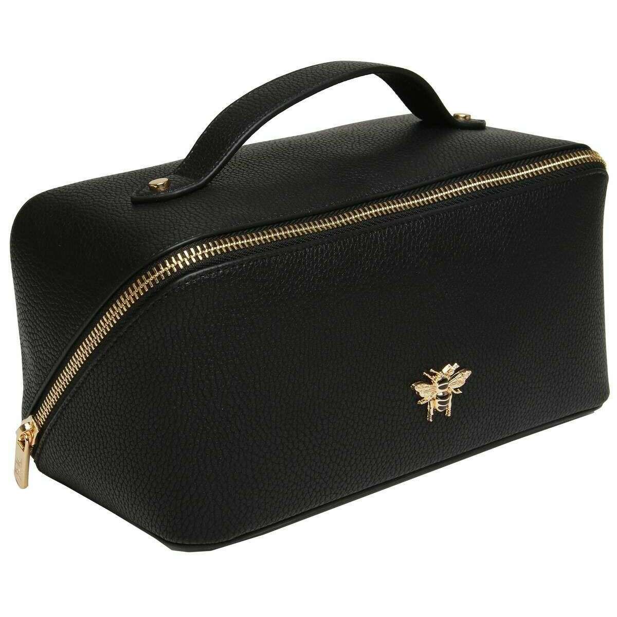 This women's luxury travel train case by the brand Alice Wheeler London is made from 100% vegan faux leather and is showcased in black. It measures 12cm(height) x 24cm(width) x 12cm(depth). It is recommended to wipe clean with cloth to keep this bag in good condition. All the bags come complete with alice wheeler packaging. The Alice Wheeler London Luxury Travel Train Case - Black is the perfect travel case for toiletries when going away or storage for your make-up and beauty products. The luxury design features a zipped closure and opens up to a large main compartment with internal pockets for your smaller essentials. The top handle makes it effortless to transport and the stylish branding on both sides adds an elegant touch.