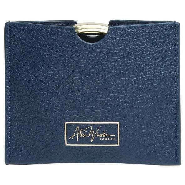 Introducing this women's mirror and pouch by Alice Wheeler London, it is manufactured from 100% vegan faux leather in a navy colour. It measures 9.5cm(height) x 11.5cm(width). It is recommended to wipe clean with damp cloth to keep this compact in good condition. All the compacts come complete in alice wheeler london packaging. The Alice Wheeler London Mirror and Pouch - Navy is a handy accessory to keep in your bag for when you need a quick glance at how your hair is looking or if your make-up needs a little top up. It comes in a faux leather slip case with is debossed with Alice Wheeler branding that will keep the little mirror protected wen not in use. An ideal choice of gift.