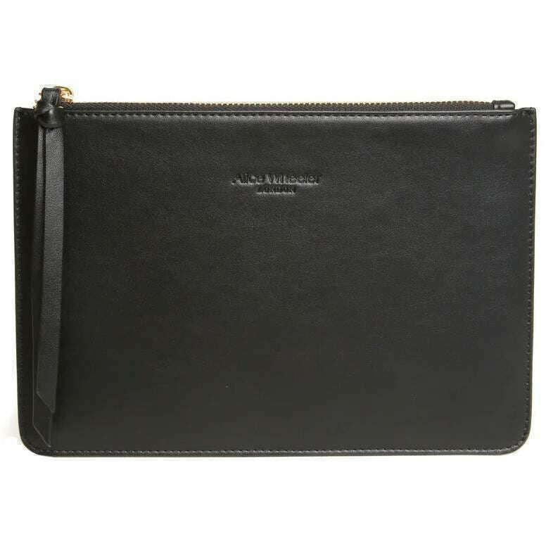 This women's paris clutch has been made from 100% nappa finish vegan faux leather, featured in a black colour and is from the brand Alice Wheeler London. It measures 16cm(height) x 24cm(width) x 2cm(depth). All the bags come complete with alice wheeler packaging. The Alice Wheeler London Paris Clutch - Black features a slim design, making it a stylish choice of clutch for a night out or a pouch to carry your essentials. The versatile simple designs makes this the perfect bag for any occasion adding an elegant touch to all looks. Just what you need with ample space for the essentials. Fashionable branding on the front adds an fashionable touch.