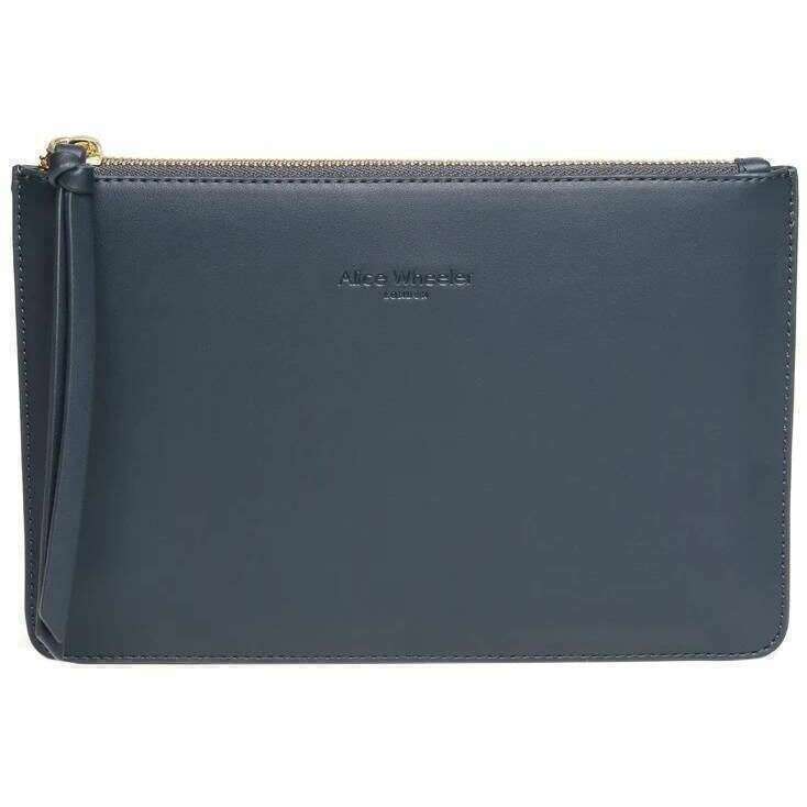 Introducing this women's paris clutch by Alice Wheeler London, it is manufactured from 100% nappa finish vegan faux leather in a navy colour. It measures 16cm(height) x 24cm(width) x 2cm(depth). All the bags come complete with alice wheeler packaging. The Alice Wheeler London Paris Clutch - Navy features a slim design, making it a stylish choice of clutch for a night out or a pouch to carry your essentials. The versatile simple designs makes this the perfect bag for any occasion adding an elegant touch to all looks. Just what you need with ample space for the essentials. Fashionable branding on the front adds an fashionable touch.