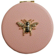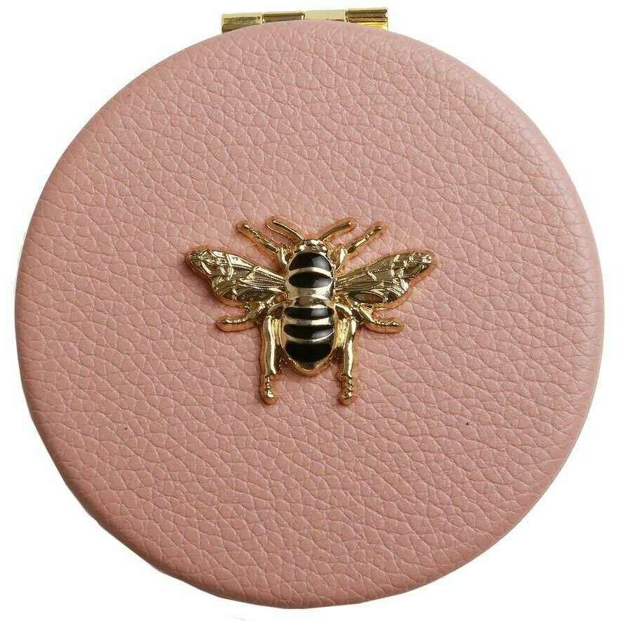 This women's round compact mirror has been made from 100% vegan faux leather, featured in a pink colour and is from the brand Alice Wheeler London. It measures 7cm(height) x 7cm(width). All the compacts come complete in alice wheeler london packaging. The Alice Wheeler London Round Compact Mirror - Pink is the perfect accessory that is essential to carry around with you in your handbag. The beautifully iconic bee embellishment adorns the front of it. Inside is a 7x magnifying mirror with a twin gold-toned metal frame which is ideal for those day to day touch ups.