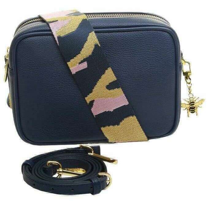 Manufactured from 100% vegan faux leather is this navy women's soho camera crossbody bag by the designer Alice Wheeler London. It measures 16cm(height) x 22cm(width) x 8cm(depth). All the bags come complete in alice wheeler london packaging. The Alice Wheeler London Soho Camera Crossbody Bag - Navy comes complete with two straps, a stylish patterned one and a matching colour-coordinate one so you can swap to which ever suits the occasion. Featuring twin main compartments which are secured with a zip fastening and an internal zipped pocket for your smaller, more valuable items, this cross-body bag is perfect for storing your day-to-day necessities. The straps are fully adjustable to find a style that suits you.
