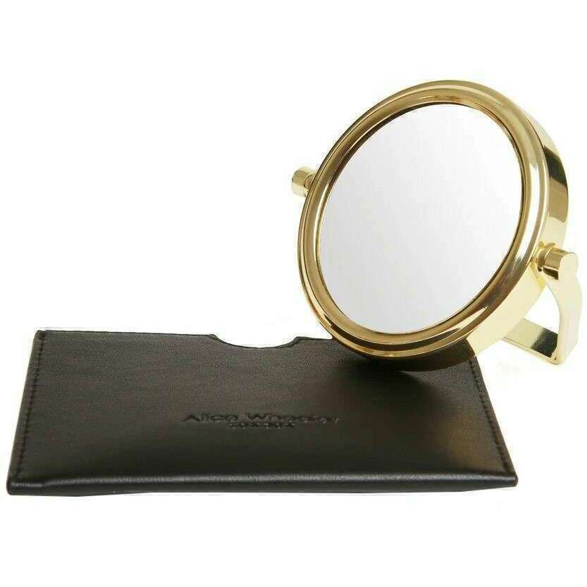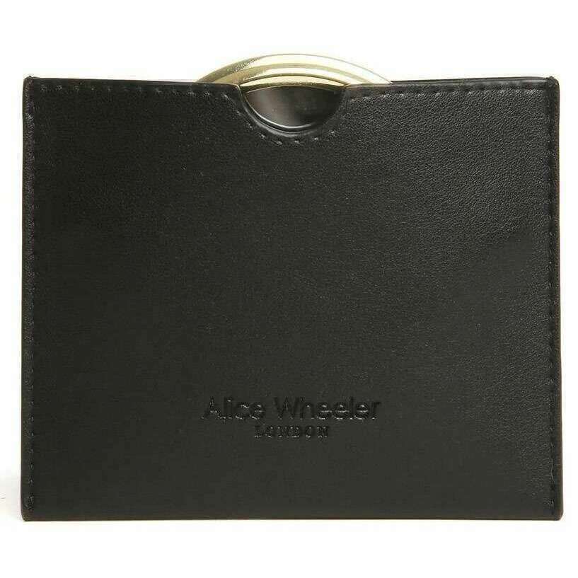This women's venice mirror and pouch by the brand Alice Wheeler London is made from 100% vegan faux leather and is showcased in black. It measures 9.5cm(height) x 11.5cm(width). It is recommended to wipe clean with damp cloth to keep this compact in good condition. All the compacts come complete in alice wheeler london packaging. The Alice Wheeler London Venice Mirror and Pouch - Black is a handy accessory to keep in your bag for when you need a quick glance at how your hair is looking or if your make-up needs a little top up. It comes in a faux leather slip case with is debossed with Alice Wheeler branding that will keep the little mirror protected wen not in use. An ideal choice of gift.