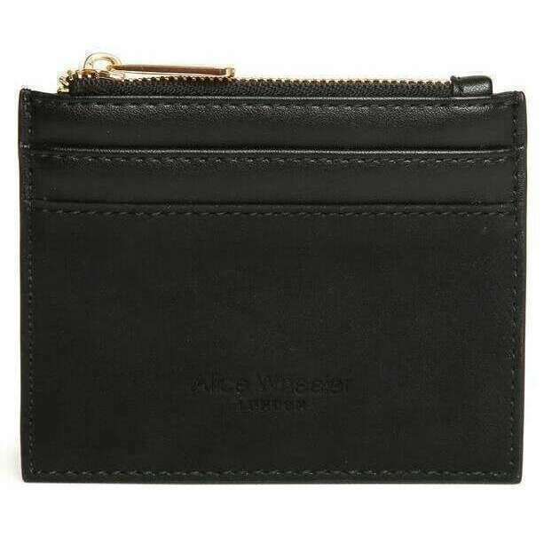 Designer Alice Wheeler London has brought you this women's 100% nappa finish vegan faux leather purse using black tones. It measures 9cm(height) x 11.5cm(width). All the purses come complete with alice wheeler packaging. The Alice Wheeler London Verona Coin Purse - Black is handy and a great way to organise your cards and cash. This purse features a main zippered compartment to store coins and notes and 2 card slots on the front and 2 on the back. Finishing off this purse is the Alice Wheeler branding on the front. Made from high-quality vegan faux leather means that this purse is completely eco-friendly.