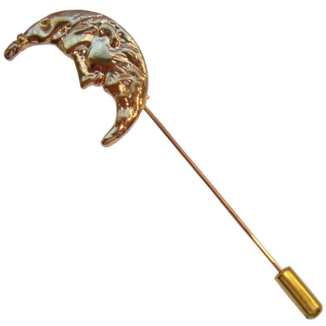 Bassin and Brown Crescent Moon Lapel Pin - Gold