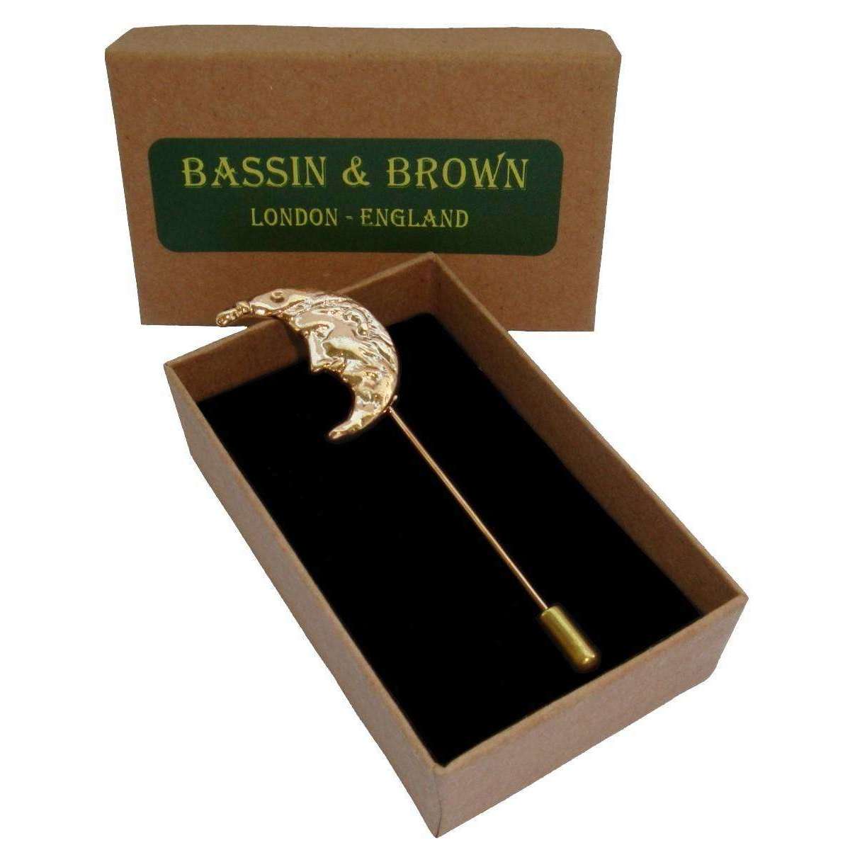 Introducing this men's crescent moon lapel pin by Bassin and Brown, it is manufactured from gold rhodium plate in a gold colour. It measures 8cm(length). All the lapel pins come complete in a bassin and brown presentation box. The Bassin and Brown Crescent Moon Lapel Pin - Gold will add a touch of uniqueness to your attire. This lapel pin is perfectly sized to be noticeable but not too big to distract anyone from your overall look. With it having a shiny polished finish, it will be certain to impress anyone. Make this a must have to add to your collection.