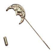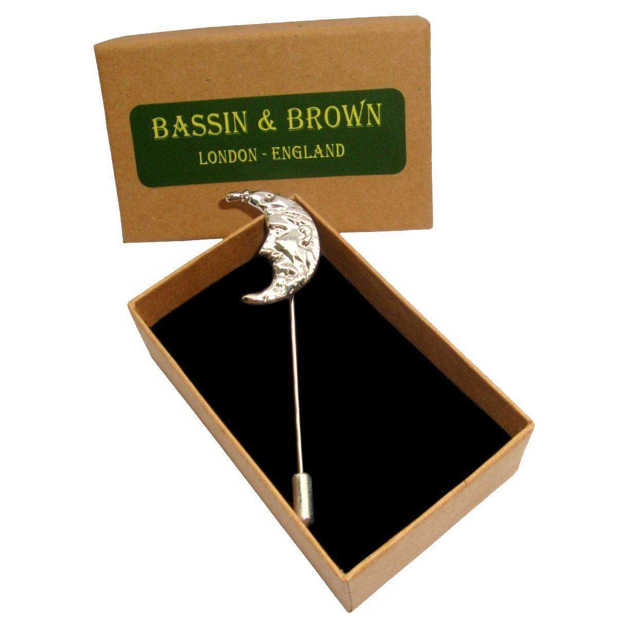 Bassin and Brown Crescent Moon Lapel Pin - Silver
