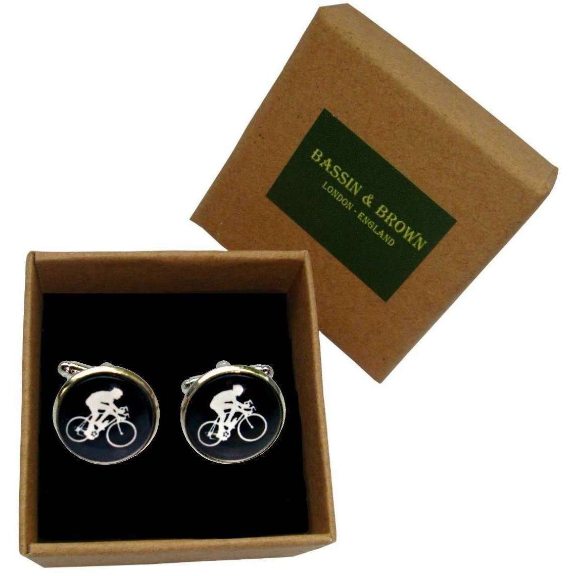 These well made men's cycling cufflinks from Bassin and Brown come in a black/white colour and are manufactured from rhodium plate and photo glass cabochon. All the cufflinks come complete in a bassin and brown presentation box. The Bassin and Brown Cycling Cufflinks - Black/White offer a luxurious touch to any gentleman’s formal attire. Flair and style go hand in hand with these stunning cufflinks which will look the part on any occasion, finishing off your shirt or jacket. Fitted with a simplistic swivel back they are nice and easy to take on and off making their wear effortless.