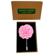 Perfect for men is this Bassin and Brown pink flower lapel pin, it is also made from rhodium plate. It measures 8cm(height of pin) x 5cm(diameter). All the lapel pins come complete in bassin and brown recyclable box. The Bassin and Brown Flower Lapel Pin - Pink is an eye catching accessory that is perfect for weddings or special occasions. Adding a dash of colour, this is certain to impress with its size and overall design.