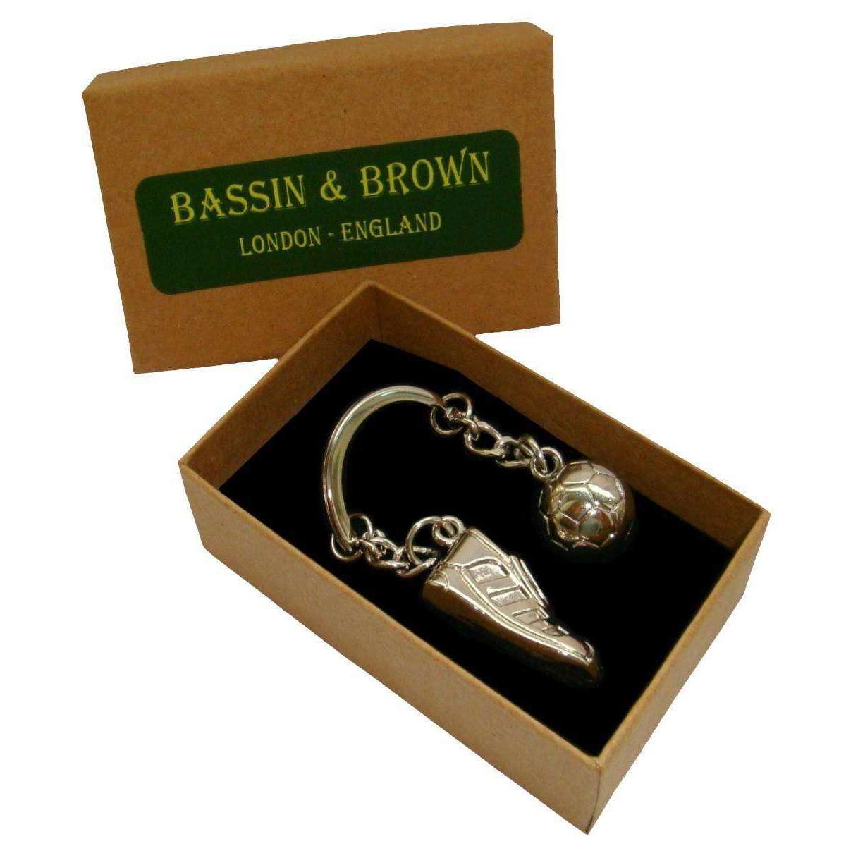 Bassin and Brown Football Boot and Ball Keyring - Silver