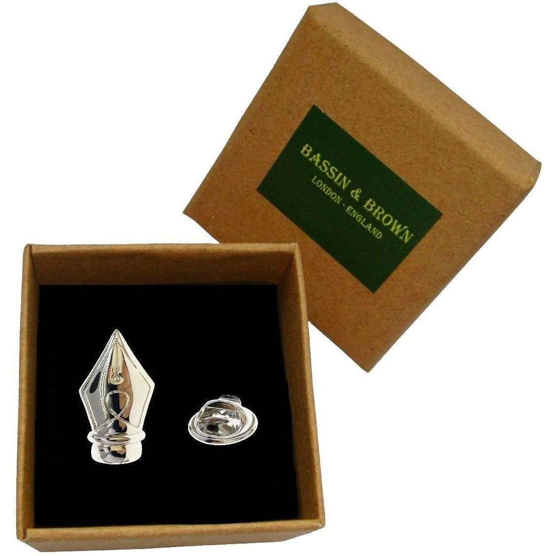 Bassin and Brown Fountain Pen Lapel Pin - Silver