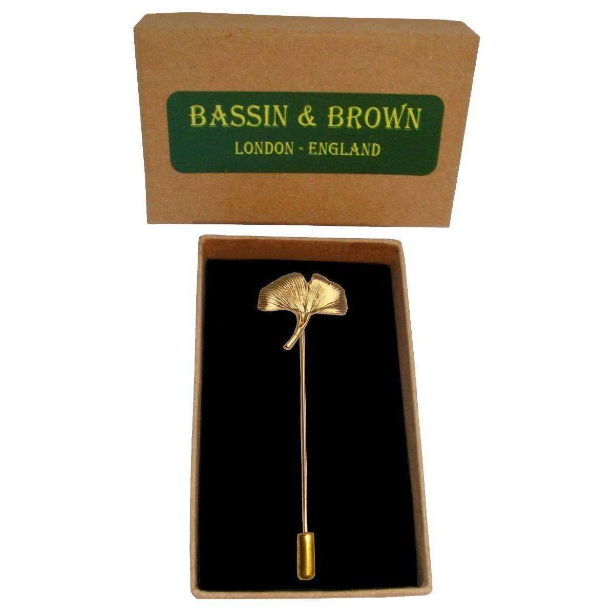 This ginkgo biloba leaf jacket lapel pin for men is fashioned by the brand Bassin and Brown in a gold colour and is made from rhodium plate. It measures 8cm(length). All the lapel pins come complete in a bassin and brown presentation box. The Bassin and Brown Ginkgo Biloba Leaf Jacket Lapel Pin - Gold would give your outfit that ideal finishing touch. This has been produced with a high polished finish, letting it suit any attire for any occasion. Ideal as a gift to that stylish man, this would be an ideal new addition to their collection.