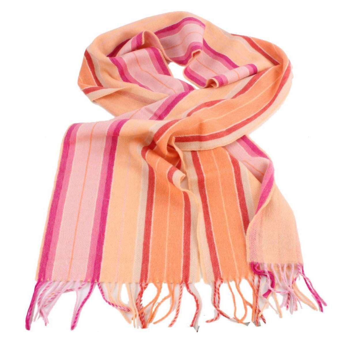 Bassin and Brown Harvey Stripe Cashmere Scarf - Orange/Pink