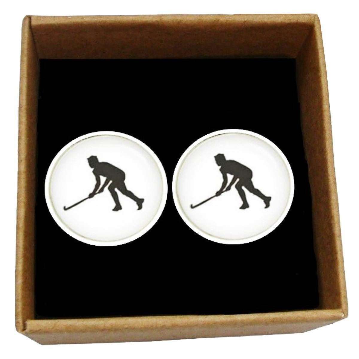 Introducing these men's hockey player cufflinks by Bassin and Brown, they are manufactured from rhodium plated metal and glass cabochon in a white/black colour. All the cufflinks come complete with bassin and brown packaging. The Bassin and Brown Hockey Player Cufflinks - White/Black are the perfect personal decoration for any shirt. With these striking Hockey Player cufflinks, you can add an element of style to your outfit. Approximately 16mm in diameter, these striking cufflinks are beautifully detailed and feature a swivel back fitting design that makes adding and removing from shirts easy. This item makes a great gift for the man that loves the sport of Hockey!