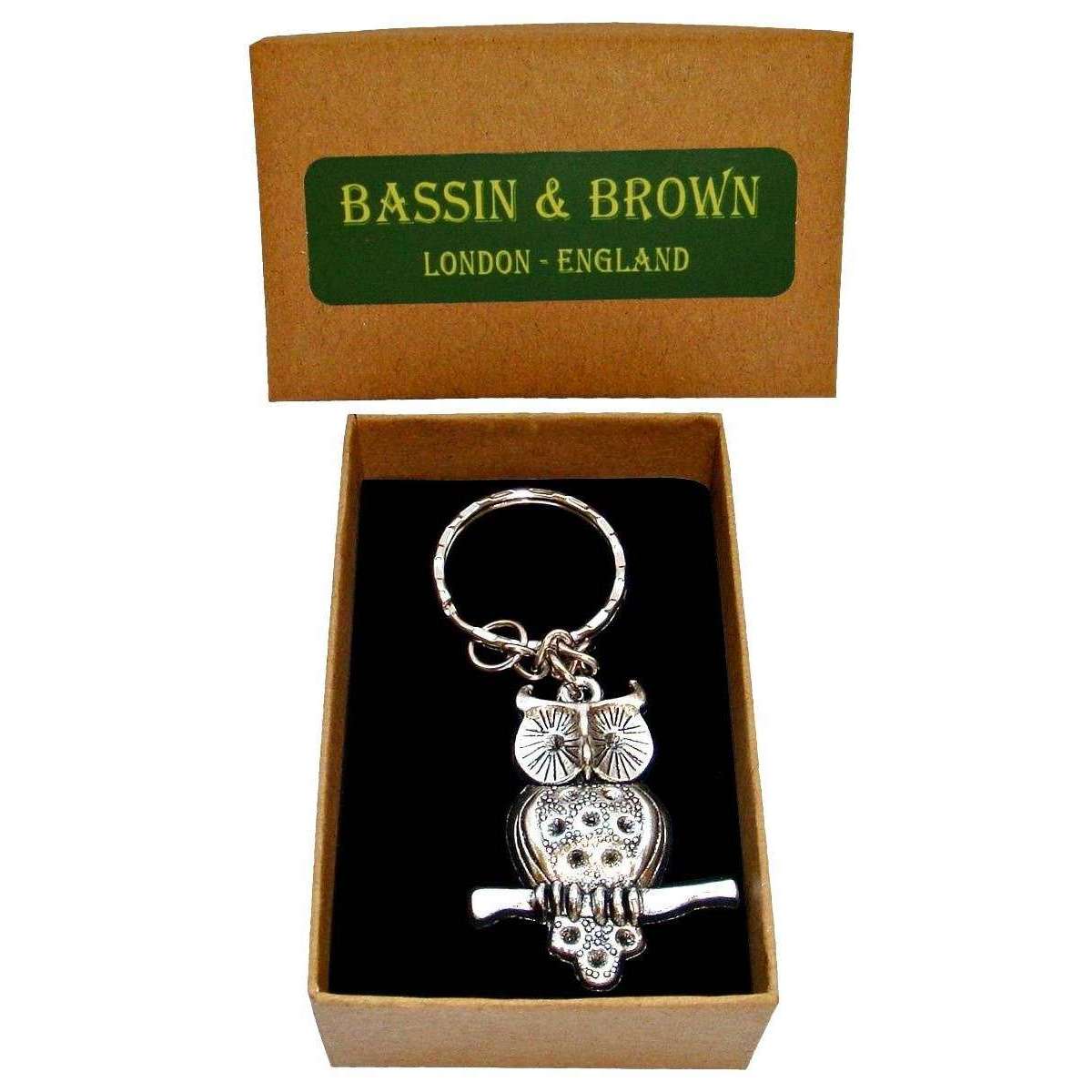 This owl key ring for men is fashioned by the brand Bassin and Brown in a silver colour and is made from rhodium plated metal. It measures 4cm(length). All the keyrings come complete with bassin and brown packaging. The Bassin and Brown Owl Key Ring - Silver is perfect for holding your keys stylishly and safely together. Light weight and comfortable, this Owl designed keyring is beautifully detailed and is approximately 8cm in length. Perfect for everyday carry, this keyring is sturdy and durable. Elevate your keyring game and highlight your unique taste with this stylish piece. Perfect gift for ornithologists and wildlife lovers.