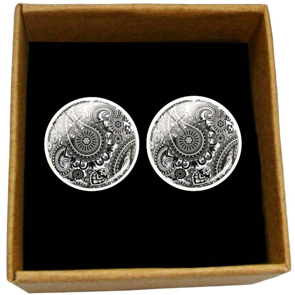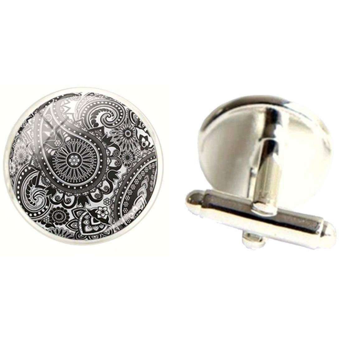 These men's paisley cufflinks have been made from rhodium plate and photo glass cabochon, featured in a black colour and are from the brand Bassin and Brown. All the cufflinks come complete in a bassin and brown presentation box. The Bassin and Brown Paisley Cufflinks - Black/White are just what your outfit needs to make an impression on those special occasions. Securing your cuff perfectly thanks to their easy to attach swivel t-bar back they are a must have for any gentleman’s collection. Offering both style and quality these cufflinks should not go unnoticed. Make them a superb and thoughtful gift for yourself or a loved one.