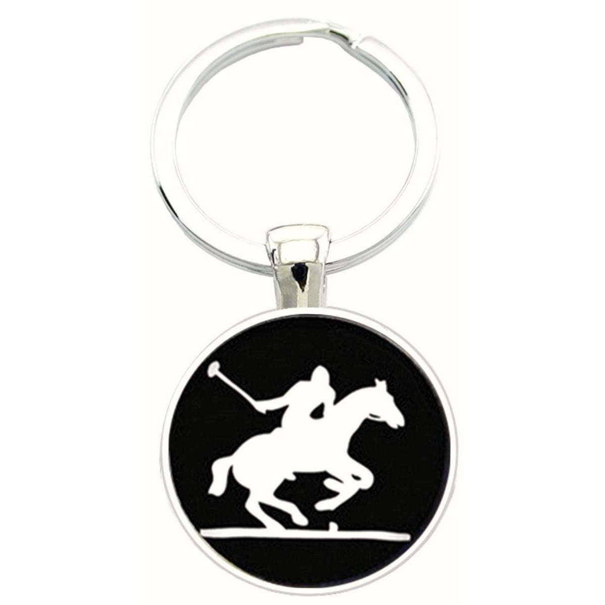 Designer Bassin and Brown has brought you this men's glass cabochon and rhodium plate keyring using black/white tones. It measures 6cm(length). All the keyrings come complete in a bassin and brown presentation box. The Bassin and Brown Polo Player Keyring - Black/White features a shiny polished finish front and textured back for a simple design. This silhouette design will be certain to impress those who have a love for polo or equine sports. Make this a must have to add to your set of keys.