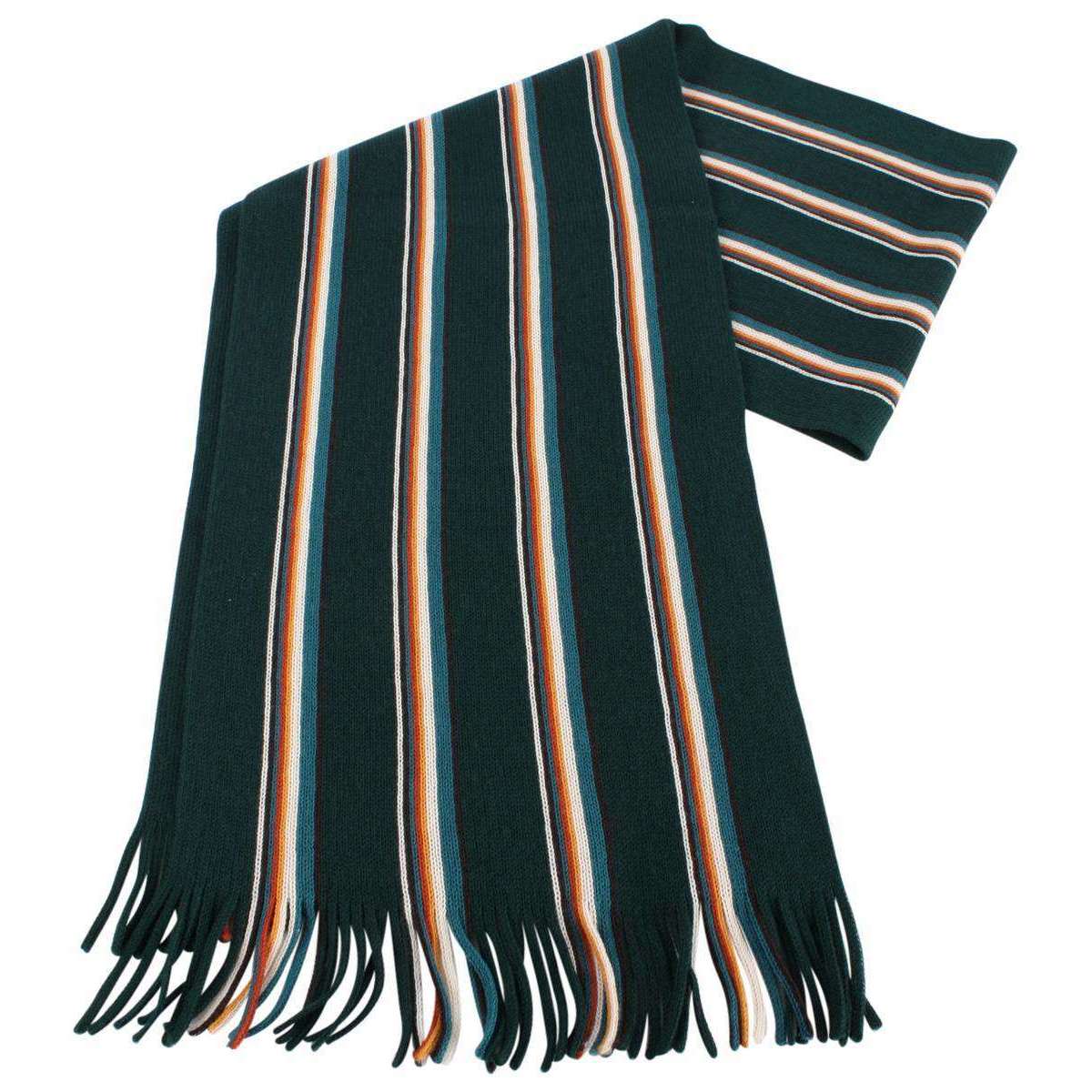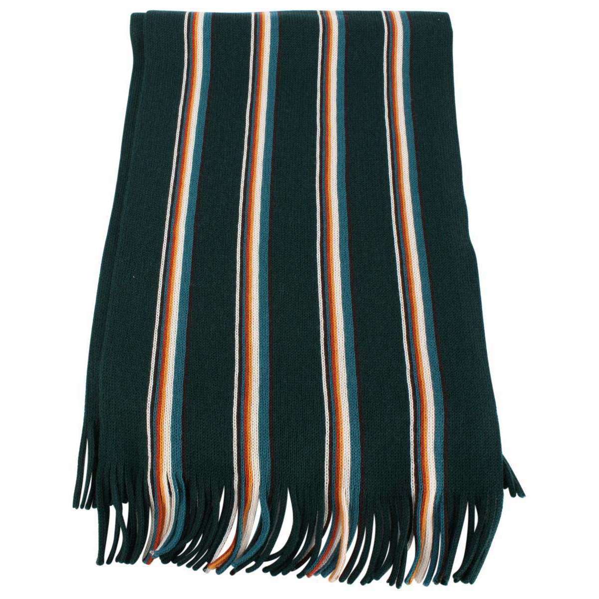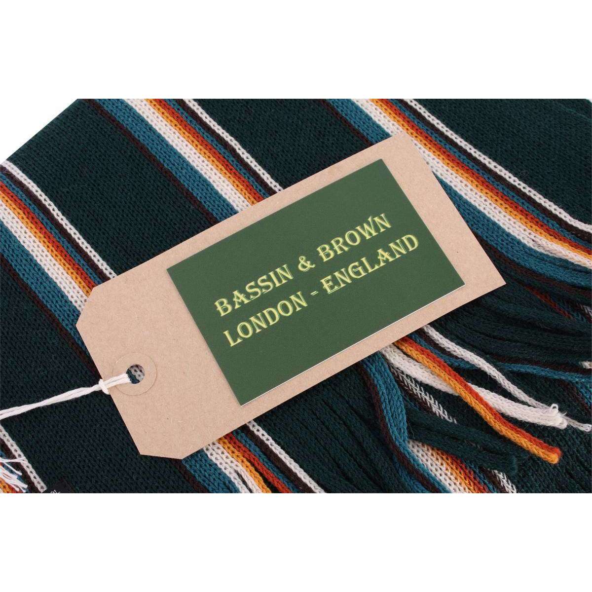 Bassin and Brown Puskas Striped Wool Scarf - Green/Cream/Tango