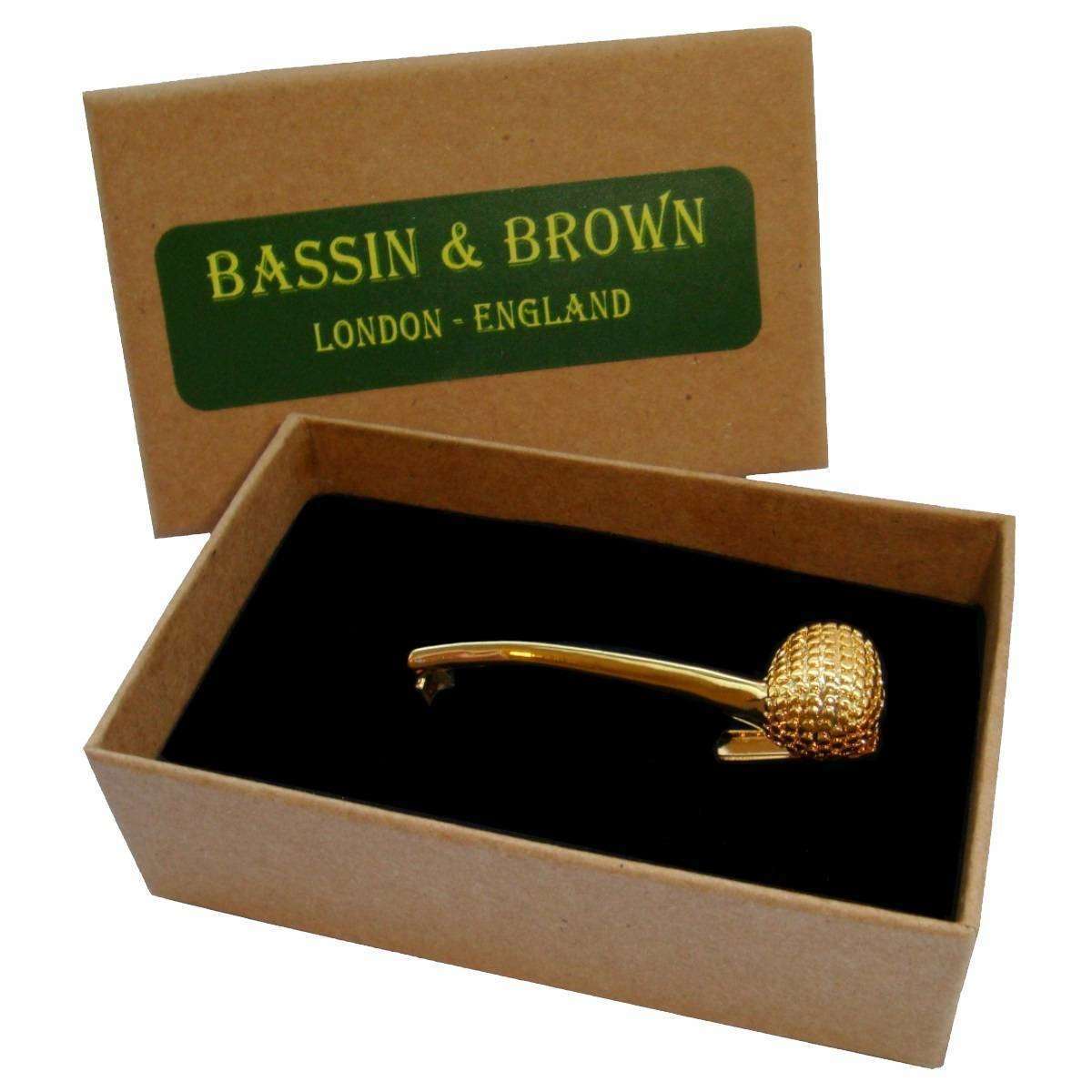 Bassin and Brown Smoking Pipe Tie Bar - Gold