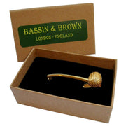 Brought to you by the brand Bassin and Brown, this gold men's smoking pipe tie bar is made from gold plate. It measures 4.5cm(height). All the tie clips come complete in bassin and brown recyclable box. The Bassin and Brown Smoking Pipe Tie Bar - Gold is a highly detailed masterpiece. This would be an impeccable gift for those vintage lovers or pipe smokers in general. Add a touch of uniqueness to your attire and stand out from the crowd.