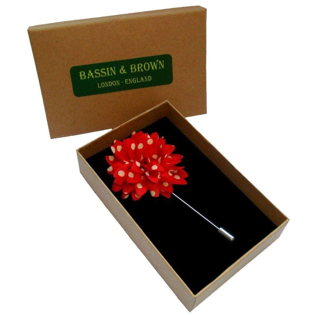 Designer Bassin and Brown has brought you this men's fabric and rhodium plate lapel pin using red tones. It measures 8cm(length). All the lapel pins come complete in a bassin and brown presentation box. The Bassin and Brown Spotted Flower Jacket Lapel Pin - Red gives off an amazing effect with its simplistic design. Guaranteed to make you stand out perfectly, this is a must have to add to your collection to add a dash of colour and sophistication. Being just the right size, it will suit any outfit for any occasion.