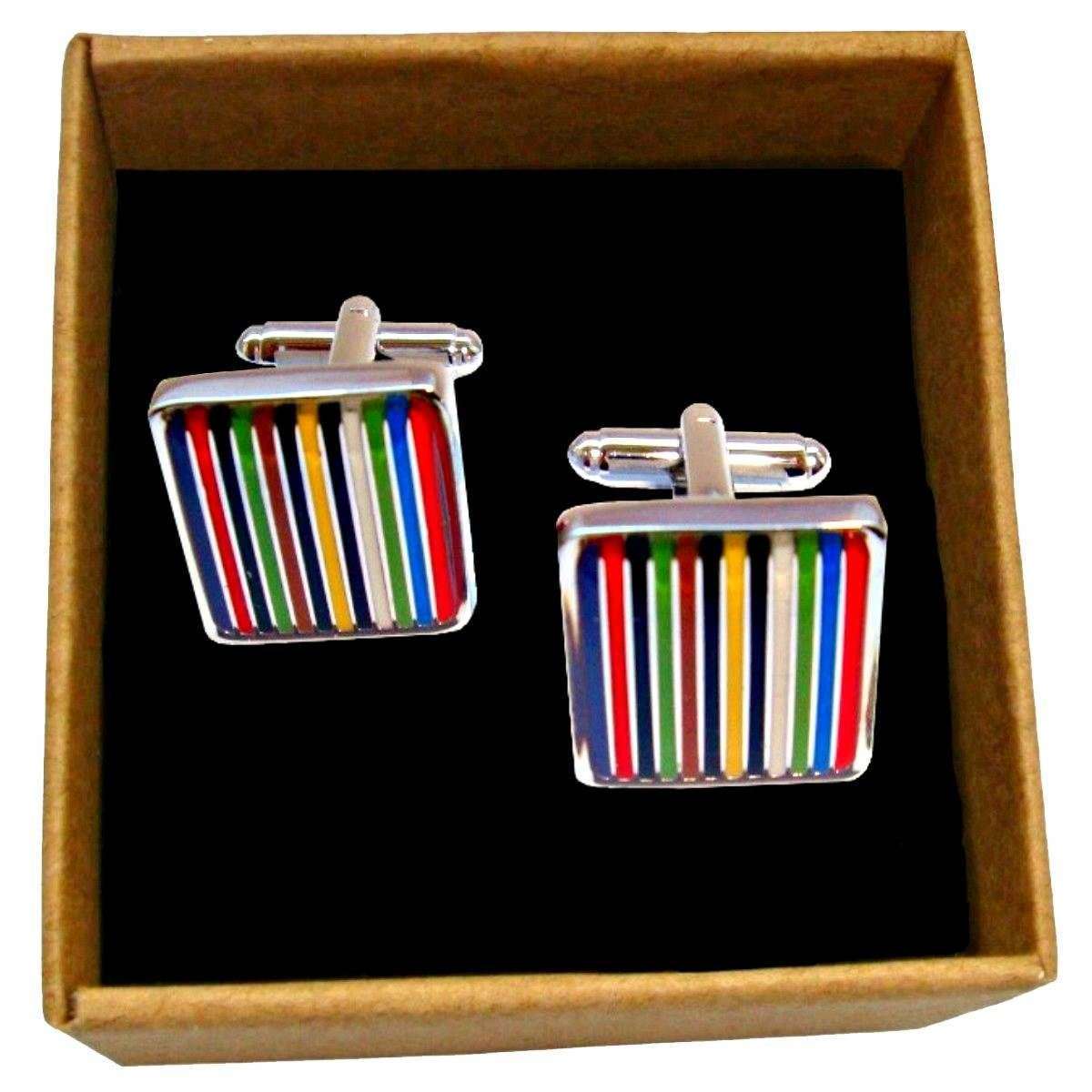 These well made men's striped enamel cufflinks from Bassin and Brown come in a multi-colour colour and are manufactured from rhodium plated metal and enamel. All the cufflinks come complete with bassin and brown packaging. The Bassin and Brown Striped Enamel Cufflinks - Multi-colour are the perfect personal decoration for any shirt. With multi coloured striped enamel, you can add an element of style to your outfit. These striking cufflinks are beautifully detailed and feature a swivel back fitting design that makes adding and removing from shirts easy. This item makes a great gift for the modern, stylish and fashionable man.