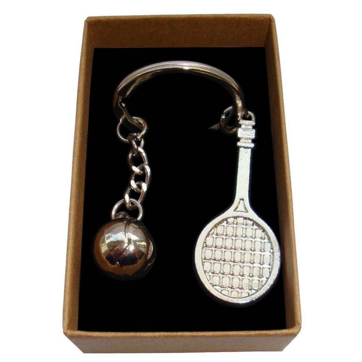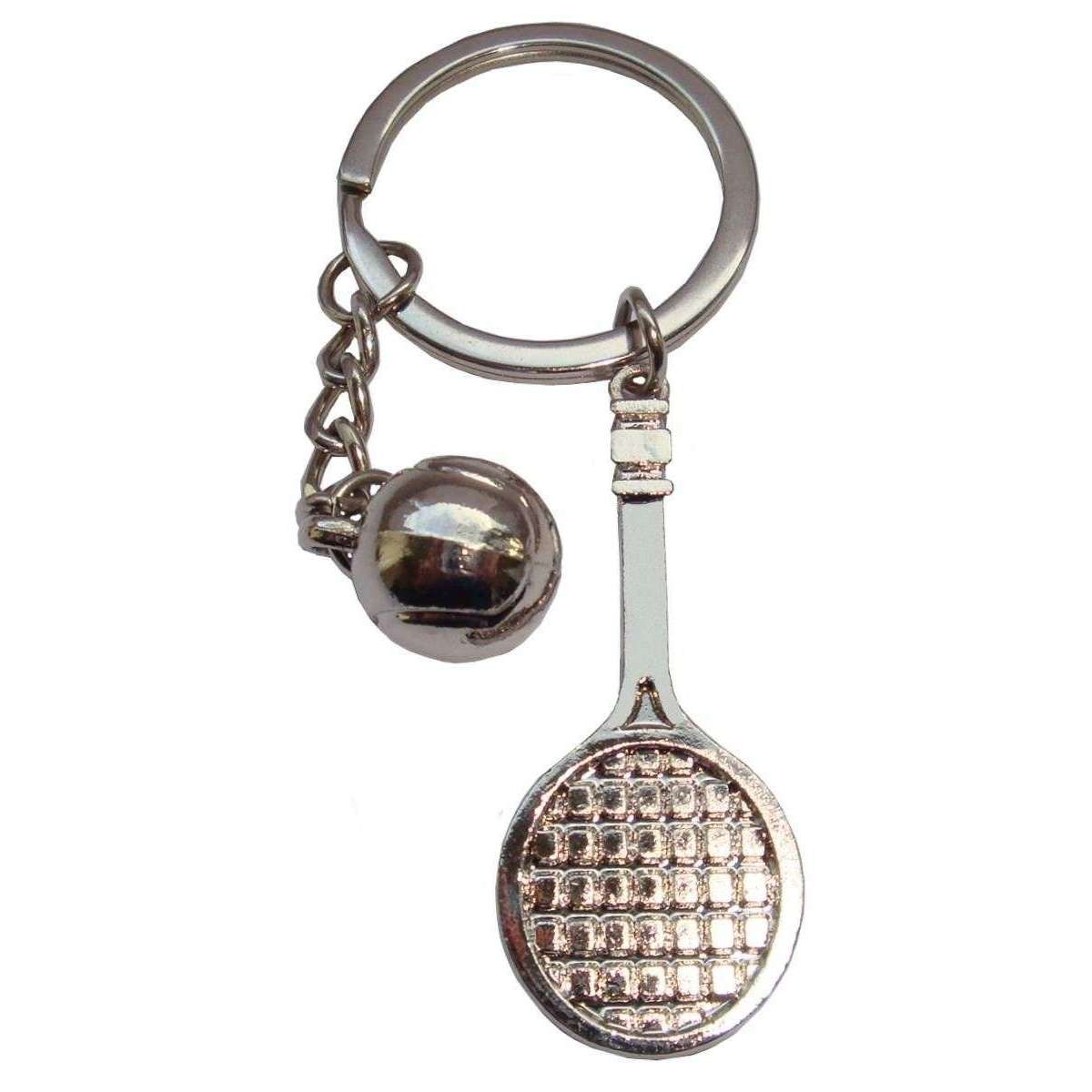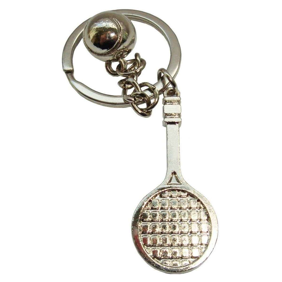 Bassin and Brown Tennis Racquet and Ball Key Ring - Silver