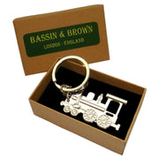 This train keyring for men is fashioned by the brand Bassin and Brown in a silver colour and is made from silver plated zinc alloy. It measures 5cm(length). All the keyrings come complete in a bassin and brown presentation box. The Bassin and Brown Train Keyring - Silver has been produced with a shiny polished finish. This keyring would make a great addition to any railway enthusiasts collection with its simplistic detailed design. Guaranteed not to disappoint.