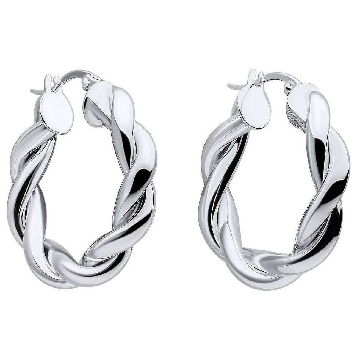 Beginnings Chunky Rope Twist Hoop Earrings - Silver