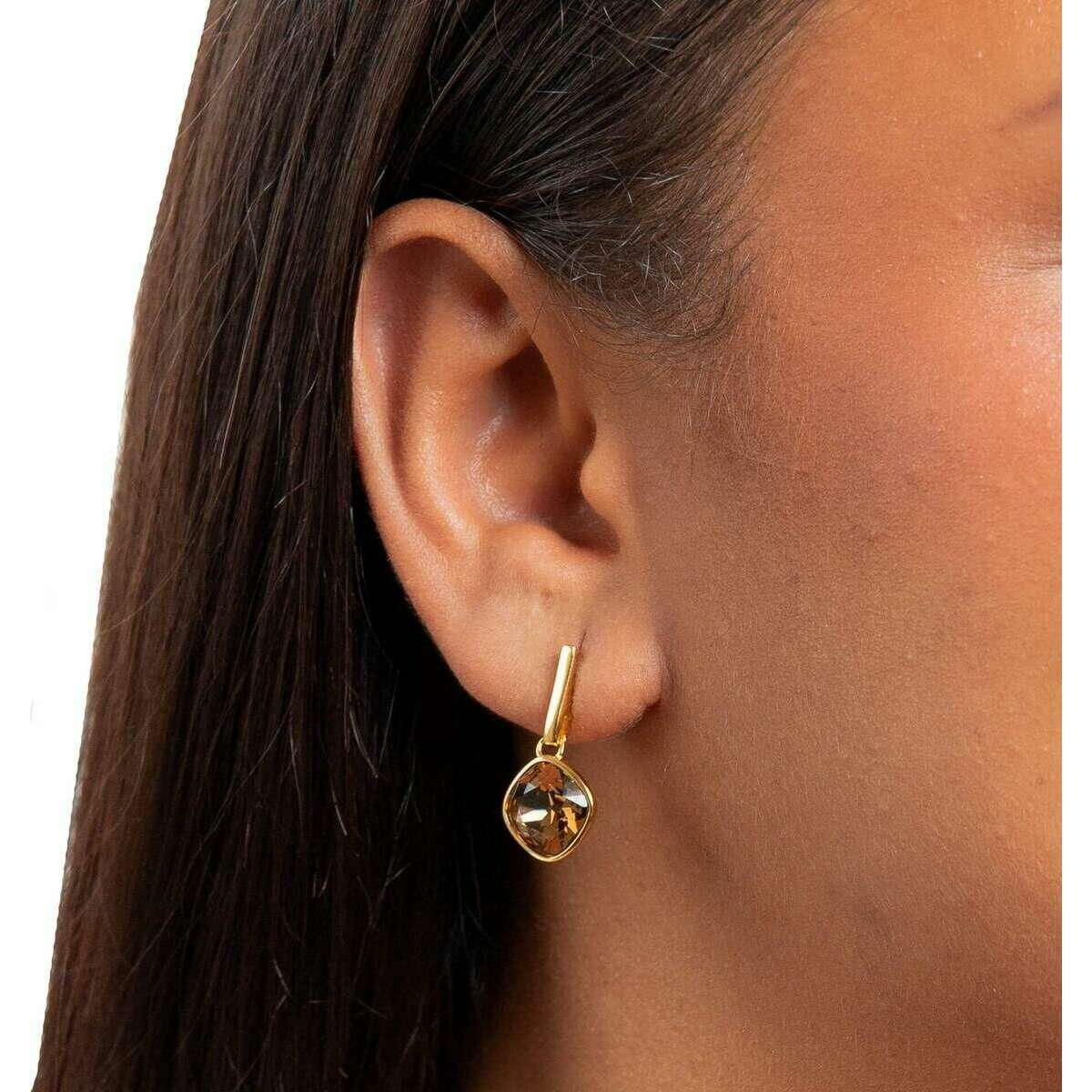 Manufactured from 100% recycled gold-plated sterling silver are these gold/topaz brown women's cushion cut crystal drop stud earrings by the designer Beginnings. It measures 2.5cm(height) x 1.3cm(width) x 0.5cm(depth). All the earrings come complete with beginnings packaging. The Beginnings Cushion Cut Crystal Drop Stud Earrings - Gold/Topaz Brown features a very luxurious and sophisticated style whilst being dainty and girly, great for special occasions or adding glamour to your everyday style. The cushion cut smoked topaz crystals, crafted within gold-plated recycled sterling silver gives these earrings a beautiful shine whilst catching the light through your movements. This pair is not only made from recycled materials but has also been certified as skin safe and hypo allergenic, making the perfect set to add to your collection.
