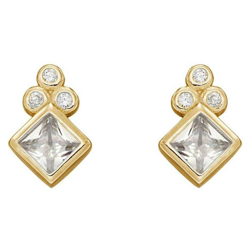 Brought to you by the brand Beginnings, these gold women's diamond shape stud earrings are made from 100% recycled gold plated sterling silver and white synthetic gemstone. It measures 0.8cm(height) x 0.5cm(width). All the earrings come complete with beginnings presentation box. The Beginnings Diamond Shape Stud Earrings - Gold are a must-have in any collection when you are wanting a simple but unique look without being too much. This simple diamond design features white synthetic gemstone stones giving a stunning sparkle. These are the perfect pair for any occasion, making them great for stacking. Crafted with skin safe gold-plated recycled sterling silver will ensure a luxurious wear.